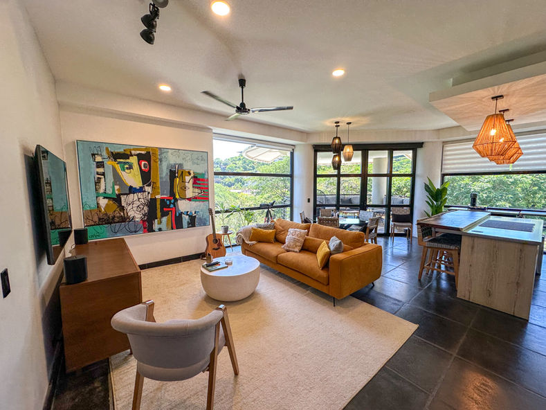 Perched on the 4th floor of the prestigious La Perla Condominium, this fully furnished residence combines modern sophistication with the relaxed elegance of coastal living. Enjoy panoramic ocean, mountain, and sunset views from your expansive private balcony, all just a short 5-minute walk to the heart of Tamarindo and its world-renowned beach.